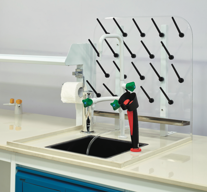 Designed to make the most of lab space, the table integrates sinks and reagent racks, ensuring students have convenient access to essential resources, improving workflow.